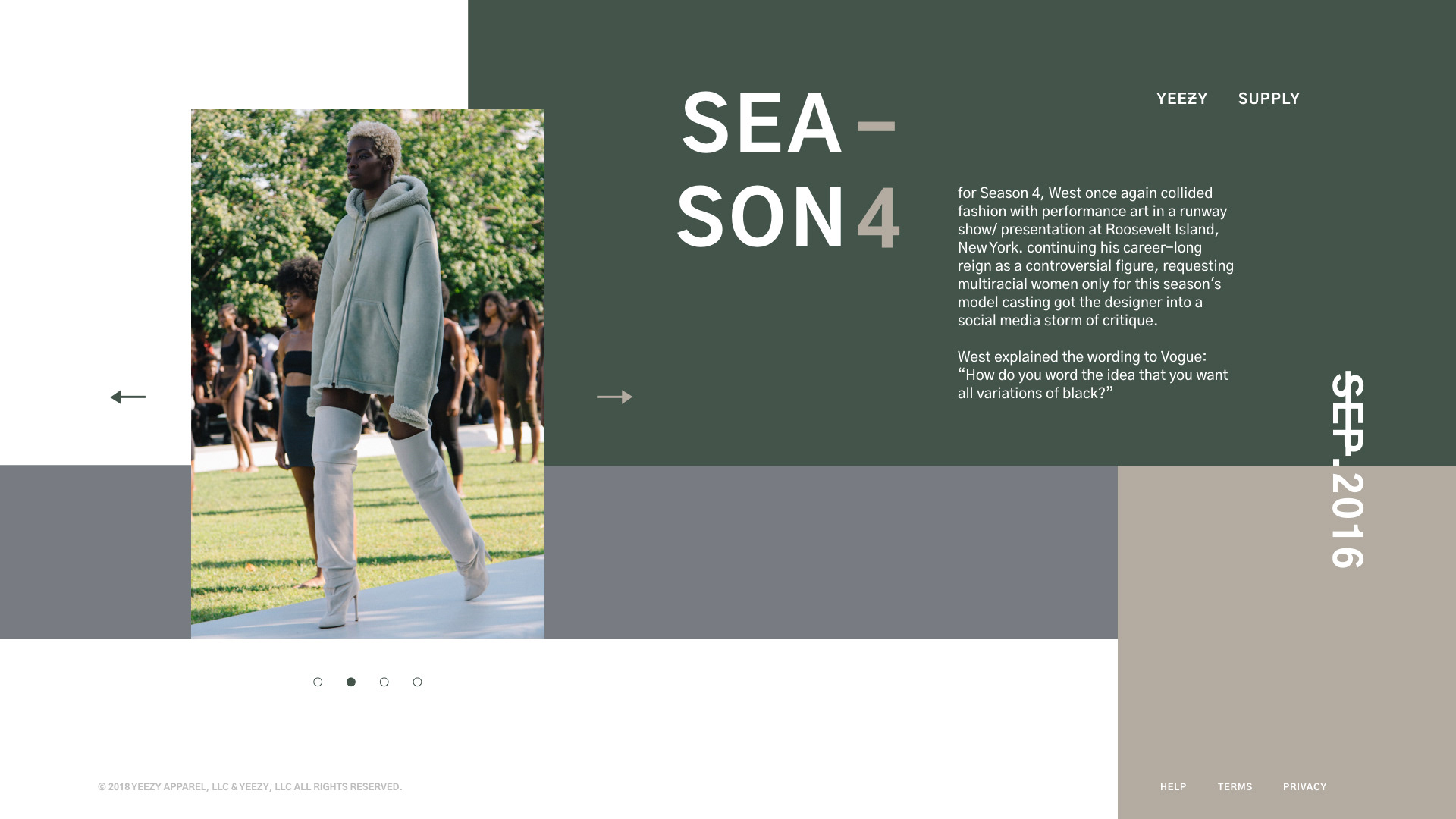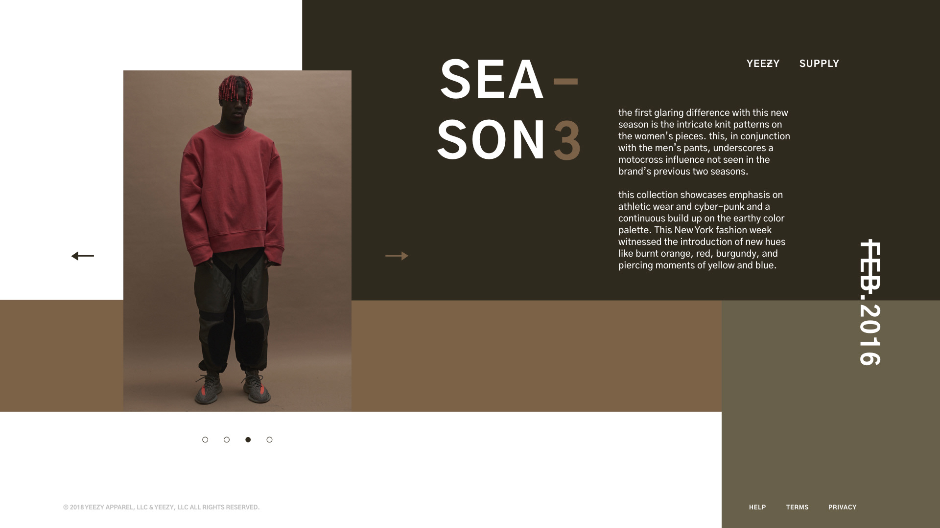 West as a creative has experience in three different disciplines. The three color blocks represent art, music, and fashion which all contribute into West’s ideation and design process.